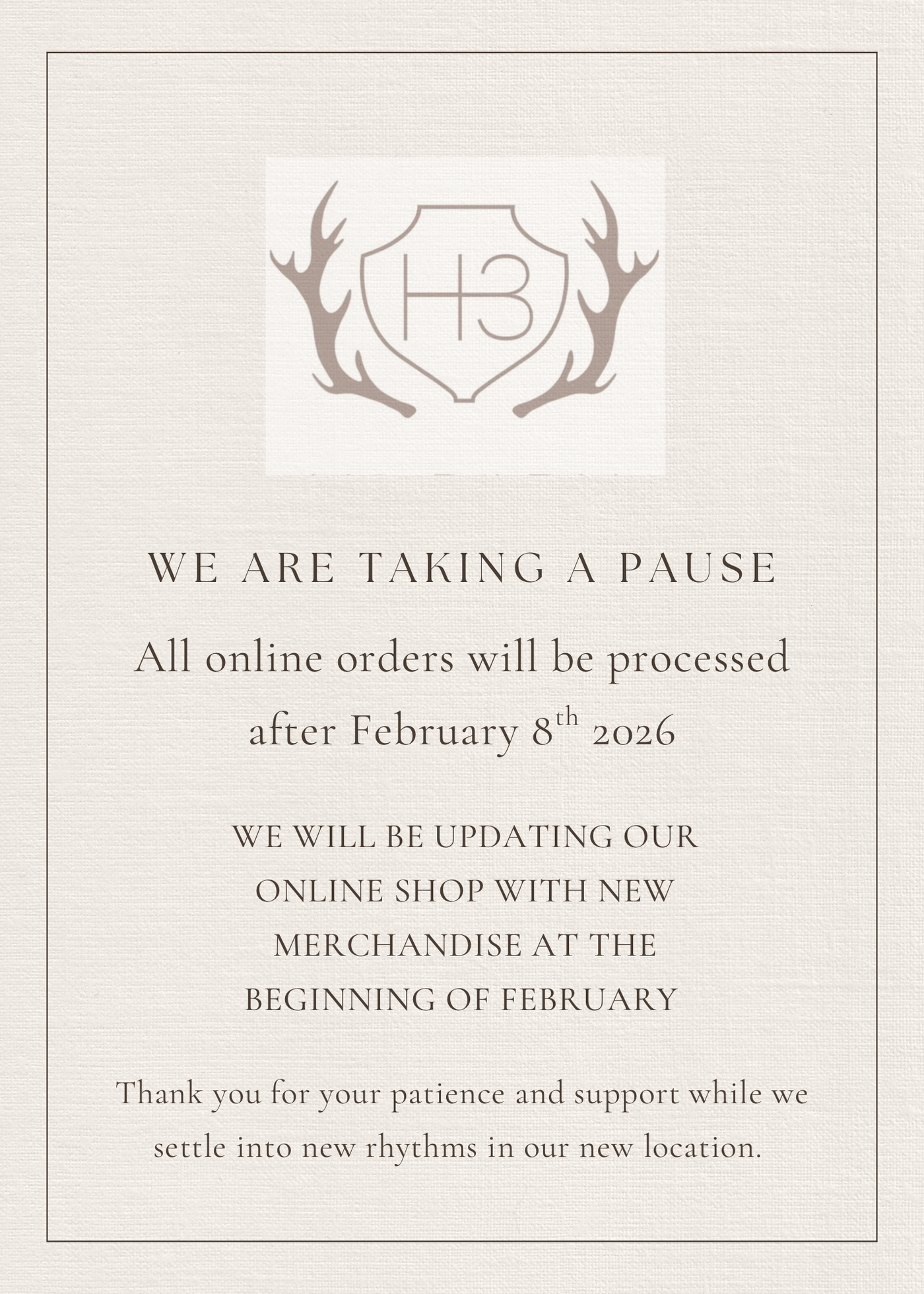 SHOP CLOSED FROM JANUARY 19TH - FEBRUARY 6TH