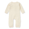 Bundle your little babe up in this 100% organic cotton footless quilted wrap front jumpsuit! This super cozy jumpsuit has interior ring snaps and exterior custom bee snaps, which make for easy on and off changes. In a beautiful, neutral cream matelassé fabric, this jumper will keep your baby cozy and cute!